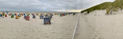 Neuerdings sind die Strandkörbe verschlossen. Das Schloss kann durch die digitale App "Strandbutler" gegen Zahlung geöffnet werden. Was modern erscheint wirft allerdings auch einige Nachteile zu den bisherigen Gegebenheiten auf, die Langeoog zu etwas besonderem gemacht hat. Kein mal eben kurz hinsetzen können für ältere Gäste, kein Schutz vor einem Regenschauer. Ein hässliches Bild deutscher Verschlossenheit und Zeuge der Angst und Gier, dass man hier ggf. einen Euro zu wenig verdient. Ein weiterer offensichtlicher Schritt der das Misstrauen der neuen Insulaner-Generation gegenüber den Feriengästen offenbart. Da kann man nun auch gleich an die Ostseeküste fahren. Bisher ist das Konzept als Anfang zwar nur am Hauptstrand umgesetzt, geplant ist es aber scheinbar für die gesamte Insel. Alle Strandkörbe sind bereits mit der Anleitung bestückt. Modern wird man eben dort, wo man die Gäste noch ein weiteres Stück schikanieren und beschneiden kann. Die Möglichkeit sich bei einem Spaziergang am Strand auch mal kurz ausruhen zu können war eine besonderer Pluspunkt dieser Insel. Das geht nun nicht mehr. Alte und in ihrer Mobilität eingeschränkte Menschen sind scheinbar nur noch Balast auf Langeoog. Aussortierung der Touristen auf unterschwelliger Art der aktuellen Inseldenke. Solidarisches miteinander ist Sand von gestern. Der Strand von Langeoog hat daher nun auch noch seinen ursprünglichen Charakter verloren. Versperrte Strandkörbe trotz hoher Kurtaxe, die die Unmengen an Tagesgäste natürlich nicht zahlen. Und falls der Gedanke war, die Tagesgäste dadurch zur Zahlung zu motivieren, geht dies wiederum zu Lasten der Urlaubsgäste. Somit ein weiterer Schritt, die Insel zu einem Disneyland für Tagesgäste umzuformen. Ein enormer CO2 Ausstoß der Fährfahrten für einen kurzen "Disneyland" Besuch um dann die Strände unter dem Vorwand der Klimaerwärmung durch CO2 Ausstoß mit Steuergeldern wieder aufspülen zu lassen. Somit stehen diese Gitter sinnbildlich für diese ganze Verlogenheit der Inselgemeinschaft von Langeoog. Denn Umweltschutz und Willkommenskultur für Urlaubsgäste mit Bezug zur Insel und abseits des Massen-Tagestourismus wird durch die Inselverwaltung immer bedeutungsloser. Auch an dieser Stelle und aus den genannten Gründe keine Empfehlung mehr für Langeoog...