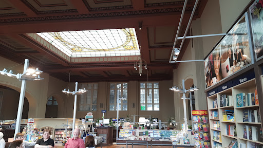 Read moreDerzeit kann man nur den Zeitschriftenteil dieses wunderbaren Raumes betreten, der Rest ist durch ein rot -weiĂes Band abgesperrt. Dennoch lohnt sich ein Besuch, denn die AtmosphĂ€re ist Ă€uĂerst angenehm durch diese besondere RĂ€umlichkeit... Leise Musik im Hintergrund fĂŒhrt zu noch gröĂerer Entspannung und es bietet einfach Freude, bei dieser enormen Vielfalt, derzeit eben nur an Zeitschriften jedweder Art ,zu stöbern. Ein Besuch ist wirklich ein Genuss und lohnt sich definitiv. Vermutlich gibt es niemanden, der nicht irgendetwas fĂŒr sich findet, meistens dann aber gleich mit mehreren "Funden" den Raum wieder verlĂ€sst. Dass das Personal Ă€uĂerst zuvorkommend ist, versteht sich von selbst. Wenn es wieder möglich ist, kann dieselbe Aussage auch fĂŒr den BĂŒcherteil getroffen werden - sehr ĂŒbersichtlich angeordnet , eine groĂe Vielfalt zu jedem Thema, HörbĂŒcher eingeschlossen-und wer in der Buchhandlung ein bisschen lĂ€nger verweilen möchte, kann eine kleine, breite Treppe nach oben zu einer etwas höher gelegene Plattform ĂŒberwinden und dort an einem der kleinen Tische in einem Sessel Platz nehmen und sich mit einem StĂŒckchen Kuchen und einem GetrĂ€nk den Besuch dieser Ludwig Buchhandlung noch ein bisschen mehr versĂŒĂen. Dabei kann er wunderbar den Raum ĂŒberblicken und die AtmosphĂ€re auf sich...