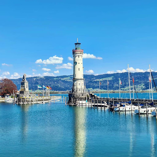 The Island and city of Lindau, located at the very east of South Germany's Lake of Constance (Bodensee), belonging to the state of Bavaria which allows Bavaria to have access to a small part of the Lake. First records go back to 200 when during the Roman Empire remains of a Roman Villa were found. In 882 a Monk from the St. Gallen (Switzerland) Abbey established a Catholic Convent. He documented and named Lindau, which in his translation means 'Island of the Linden tree's'. All this happened at the nearby area of Aeschach but in 1079 the Convent moved to the Island itself. Due to it's growing Trade activities with neighboring countries Austria, Switzerland and Italy it was given the status of an 'free Imperial city' in 1275. The French Revolution (1789) brought a lot of changes and Lindau became part of Austria but returned to Bavaria in 1805. With this in 1853 an important Train station was built, connecting the area with Munich, and South Europe. After WWII it was occupied by French troops (while the remaining Bavaria was under American control) As it was never badly battled or bombed, Lindau today is a jewel of old historic houses with churches, markets and activities. Note: In 1322 the Lindauer Bote (Lindau messenger) was a Postal service that travelled once a week from Lindau via Austria, Switzerland's Alp's (the Viamala) to Italia's Milan. The 325 Km journey took 5 days on a horse carriage....
