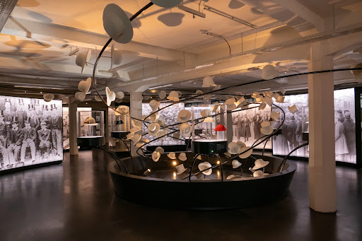 A szintek közt egy érdekes csigalépcső és lift is közlekedik. Ha a lépcsőt választjuk, akkor azt hiszem a 2. emeleten betekintést nyerhetünk egy mai kalapkészítő, de legalábbis díszítő terembe. Az öt emeletes épületben kényelmesen lehet sétálgatni a kiállított alkotások között, a színek közül általában a fekete-fehér dominál.