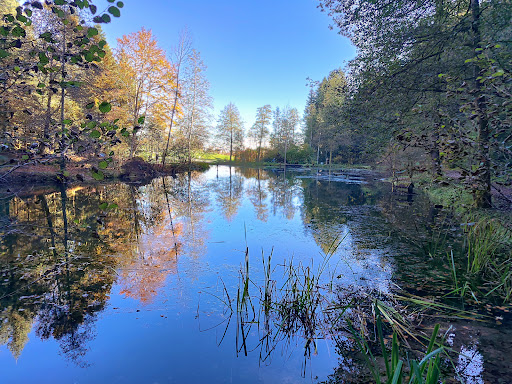 Hier leben einige Vögel, Enten und Biber bauen ihren Dämme. Der kleine See lässt sich problemlos umrunden und hat viele Zugänge zum flachen Wasser.