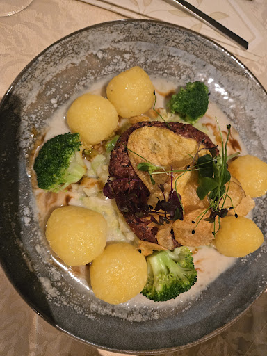 Leider ist der Restaurantbereich im Wintergarten etwas in die Jahre gekommen und könnte neue Farbe und neue SitzbezĂŒge vertragen. Es wird etwas angestaubt. Die Mahlzeiten kommen auf neuem und zeitgemĂ€Ăem Geschirr, was dann aber nicht zur TischwĂ€sche passt. Es sind Kleinigkeiten, die aber vom Gast wahrgenommen werden. Da die KĂŒche wirklich toll ist und man sich gern An das Essen erinnert, sollte auch das âDrumherumâ Beachtung finden.