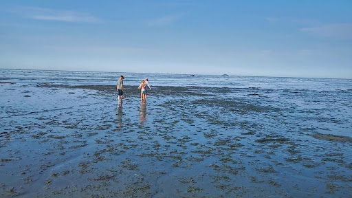 Picknick statt Kiosk – Der Naturstrand ist bewusst wenig touristisch erschlossen – nimm dir Snacks, Getränke und eine Decke mit, um den Blick auf Ebbe und Flut...