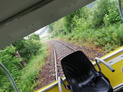 Read moreAls Teamevent hatte ich die Fahrt mit der Solardraisine gebucht. Positiv : die Fahrt mit der Draisine führte durch eine schöne Landschaft mit kleinen Tälern und Hügeln. Man fuhr über Brücken und durch einen Tunnel, am Wegesrand waren Schafe, Hühner und Kühe zu sehen. Negativ: Solardraisine war sehr laut, die vorderen und hinteren Plätze konnten sich kaum unterhalten. Eine Draisine kann mit max. 8 Personen belegt werden. Als Teamevent hatte ich die Fahrt zwei Monate vorher gebucht für 12 Personen und damit 2 Draisinen. Wegen Krankheit und anderen wichtigen Gründen mussten einige Kollegen absagen, der letzte am Tag der Fahrt. Wir waren dann nur zu acht, eine Draisine hätte gereicht. Wir mussten die zweite gebuchte, aber nicht verwendete Draisine voll bezahlen. Die Hälfte des Betrages wäre mehr als fair gewesen . Berühren sich zwei Draisine, wird eine Feststellbremse ausgelöst und die Draisine lässt sich nicht mehr bewegen. Zum Lösen der Bremse wird 100 Euro verlangt, das empfanden wir alle als Zumutung. Das Personal ist nicht freundlich. Meine Bewertung: ich würde als Organisator des Teamevents die Fahrt mit der Solardraisine nicht weiterempfehlen.