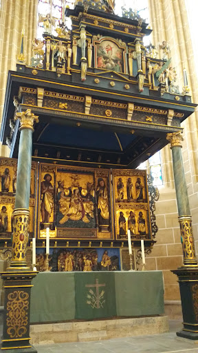 Read moreIrgendwie konnte ich über die Geschichte der Kirche nicht wirklich viel erfahren (Juli, 2025). Vielleicht ist es dem geschuldet, dass die Bauern vor 500 Jahren einen Protest gestartet haben. ;) In der säkularisierten Kirche ist nämlich eine Ausstellung zu sehen, die den heutigen Städtern die Arbeitsabläufe in einem Kalenderjahr im Mittelalter näher bringen soll. Ich entschied mich die Kirche für 5 EUR (Feierabend-Ticket) zu betreten... und ich habe mich, nachdem ich die Ausstellung in Augenschein genommen habe, über meine Knausrigekit gefreut. Sie dürfen selbstverständlich eine andere...