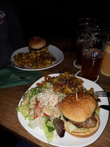 Read moreIch bewerte selten. Hier aber direkt mal eine Warnung! Auf die Getränke mussten wir gar nicht mal so lange warten, wie es in den anderen Berichten geschildert wurden. Vielleicht aber auch, weil wir gegen 18:30 Uhr zu den ersten Gästen gehörten. Das Essen kam dann aber um so später. Das hausgemachte Fladenbrot als Vorspeise kam dann endlich, als wir uns nach dem 2. Getränk schon mit dem Gedanken befassten, das Lokal zu verlassen. Es war mehr Pizza als Fladenbrot. Die einfache Version war geschmacklos, bei der Luxusvariante haben schlechter Feta und geschwärzte Discounter Oliven vergeblich versucht, Geschmack zu liefern. Hier ist es sogar den Tomaten gelungen, sich in den Vordergrund zu spielen. Wir bekamen dann später Schnitzel, die so durch waren, wie ich es noch nie erlebt hatte. Die Burger Patties waren stark durchgebraten. Der Boardwalk Empire lächelte mich mit ein aus püriertem Magerfleisch geformter Pattie trocken an. Mit ein paar Tropfen einer interessanten Soße war da auch nichts mehr zu machen. Da können selbst die Fastfood Ketten besser abliefern. Die Bratkartoffeln waren in Würfel geschnittene Kartoffeln ordentlich gesalzen und zu kalt und zu lange frittiert. Sehr fettig!!! Insgesamt waren wir sehr enttäuscht, zumal das Lokal auf dem ersten Blick sehr...