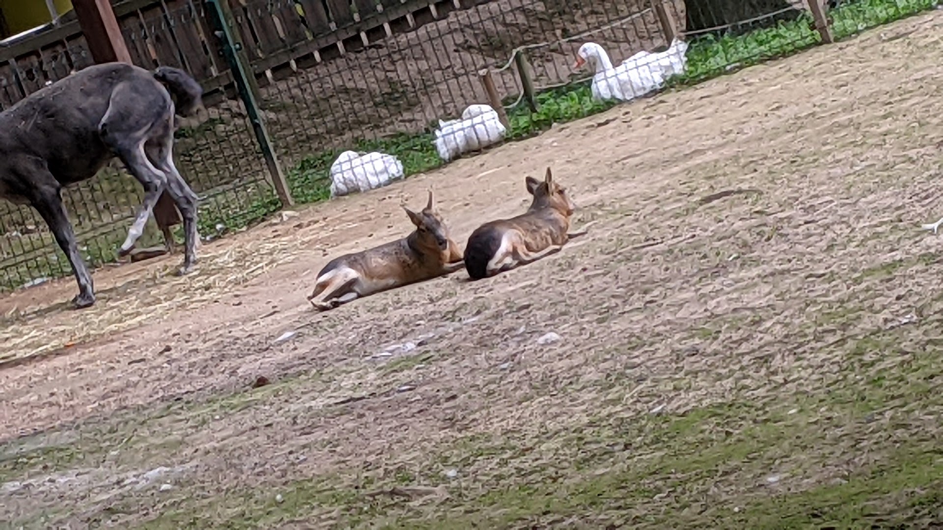 Heute waren wir am Niederrhein unterwegs und haben den Tiergarten in Mönchengladbach Odenkirchen besucht. Knappe 40 Minuten haben wir vom Kölner Norden aus gebraucht. Der Tiergarten Mönchengladbach ist ein kleinerer Tiergarten mit sehr günstigen Eintrittspreisen. Erwachsene zahlen 3.50€, Kinder ab 4 Jahren zahlen 1.50€ und Rentner sowie Studenten zahlen 2.50€. Kinder unter 4 Jahren sind frei. 🐕 dürfen leider nicht mit hinein. 🚗 Einen kostenlosen Parkplatz gibt es quasi direkt vor dem Eingang. Dieser ist nicht allzu groß, aber soviel Andrang herrscht im Tiergarten auch nicht. Ansonsten hat man die Möglichkeit an der Strasse zu parken. Direkt vor dem Tiergarten gibt es noch einen netten Spielplatz, mit Schaukeln, Rutschen, Seilbahn, Teufelsrad und Co. Perfekt für einen Abschluss nach dem Tiergartenbesuch. Im Tiergarten selbst gibt es auch einen kleinen Spielplatz, aber draußen der ist doch schöner. An der Kasse kann man Tierfutter kaufen. Eine Tüte kostet 1€. Im Tiergarten kann man damit nicht nur Ziegen füttern, sondern auch Damwild, Sikawild, Kaninchen, Esel, Pferde, Meerschweinchen und Pferde. Der Tiergarten ist flächenmäßig nicht allzu groß, hier gibt es einige ältere Gehege, die früher bestimmt mal größere Tiere beherbergt haben, aber nach heutigen Standards zu klein geworden sind. Wir finden der Tierpark hat dafür eine tolle Lösung gefunden und hat in den Gehegen nun kleinere interessante Tiere untergebracht. Es gibt zum Beispiel Nasenbären, Nerze, Mangusten, Präriehunde... Highlight sind auch die Meerschweinchen, die man füttern kann. Sie haben quasi eine eigene kleine Stadt für sich, durch diese fährt sogar auch ein kleiner Zug. 🚂 Unser persönliches Highlight waren heute die kleinen Känguruhs. Diese haben nämlich Junge in ihrem Beutel die immer mal wieder neugierig heraus geschaut haben. 😍 Es gibt viele Volieren mit Vögeln, Papageien, Eulen, Hühner und Kolkraben. Hier hat uns heute eine sehr nette Pflegerin ganz viel Wissenswertes erzählt. 👍 Sehr nett und sympathisch. Des Weiteren gibt es einige heimische Haustiere wie Schweine, Esel, Ziegen und Co. Exoten sind ebenfalls vorhanden wie beispielsweise kleine Affen, Alpakas, Nandus, Ozelot, Schildkröten etc.