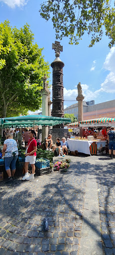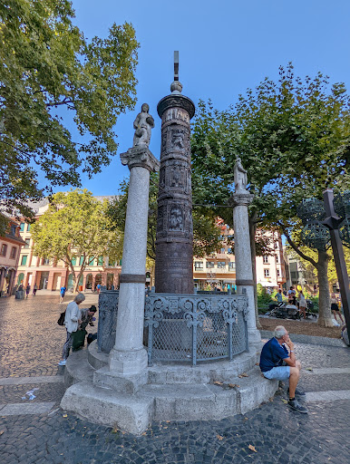 Read moreSo eine Art von Kriegs-Erinnerung, in Kunst-Gestaltung, habe ich vor der Nagelsäule die in Mainz am Dom, auf dem Liebfrauen-Platz steht, vorher in keiner anderen Stadt, gesehen. Es handelt sich um eine so genannte " Kriegsnagelung " die im Zeitraum um die Jahre 1914 - 1916, aus Spenden und Propaganda Gründen im ersten Weltkrieg in vielen Städten zu sehen gewesen seien sollen....Die auf diese Art und Weise eingesammelten Spenden, sollten Kriegsopfer zur Verfügung gestellt werden....Ein kleiner Spenden-Nagel den man selber einschlagen durfte, kostete damals 50 Reichs-Pfennig. Der teuerste Spenden-Nagel kostete 20 Mark, da war der Nagel-Kopf vergoldet.... Die Nagelsäule in Mainz am Dom, besteht aus ca. sieben Meter hohem Eichen-Holz, und wird von drei Stein-Säulen eingefasst...oben auf der Nagelsäule ist ein eisernes Kreuz angebracht. Unterhalb vom Kreuz ist der Schriftzug zu lesen " In Kriegsnot helfe uns Gott " Unterhalb der Säule ist die vierte Strophe " Wacht am Rhein " zu erkennen, zu lesen ist, Es braust ein Ruf wie Donnerhall...... Alles was damals in Mainz, Rang und Namen hatte, hat sich an dieser Nagel Säule in Mainz...