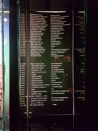 The signs on the floor are in German, however the front desk has booklets with the information translated to English or they can even provide tours!