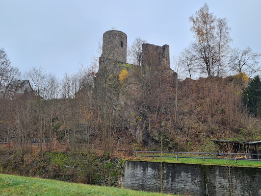 Schöne alte Ruine, wie so viel Burgen aus dieser Zeit fiel auch sie einem Krieg zum Opfer. Der kurze steile Aufstieg lohnt sich, um einmal ins Tal der Pockau zu schauen. Oben angekommen gibt es einen kleinen Rastplatz, vorausgesetzt man hat sich Proviant mitgebracht, kann man hier eine kurze Auszeit nehmen und für den weiteren Weg stärken. Abends scheint die Ruine auch beleuchtet zu sein, zumindest sieht man entsprechend ausgerichtete Scheinwerfer. Der Zahn der Zeit hat auch an einer Holzbank genagt, diese eignet sich nicht mehr wirklich zum sitzen, da rostige Schrauben...