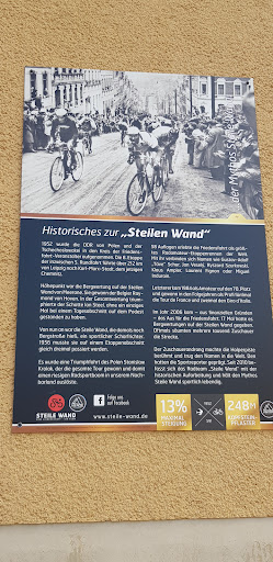 Read moreAls ich diese Straße abends mit dem Auto das erste mal befuhr dachte ich ,ich fahre gegen einen Berg. Jahre später machte ich mich mit dem Fahrrad auf nach Sachsen. Die steile wand hinauf. Ich schaffte nur die Hälfte.Die Straße ist nur etwa 260m lang. Mein lieber Freund. Ein hoch für jeden der diese in einem rutsch schafft. Alle Achtung vor unseremTäve Schur,das er die wand in seinem stolzen Alter noch bezwingt. Ich kenne den guten Gustav Täve Adolf Schur persönlich und ich habe großen Respekt vor ihm.Beim letzten Vergleich hat er diesen Aufstieg gieschafft und dass weit unter 2 Minuten . Deswegen nochmals meine höchste Bewunderung. Lieber Täve ich wünsche Dir noch viele gesunde Fahrradkilometer und immer genug Luft auf den Reifen. Frank aus Burg....