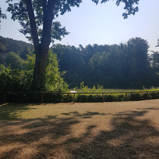Read moreEin nahezu kreisrunder See in einer (vermutlich durch Sedimente abgedichteten) Doline. Das zumindest oberirdisch zu- und abflussloses Gewässer wirkt wie ein Vulkankrater. Man kann einmal rundherum laufen und/oder auf Bänken die Stimmung genießen. Als ich fühmorgens dort war, war es jedenfalls fast menschenleer. Zu anderen Zeiten kann es sicherlich recht belebt sein. Sehr sehenswert. Widersprüchlich erscheint mir, dass der See als Geotop ausgewiesen ist und Schilder darauf hinweisen, dass Aktivitäten im Wasser nicht erlaubt/erwünscht sind, um seine Fauna und Flora zu schützen, andererseits er als beliebter Badesee gilt bzw. gepriesen wird. Das ausdrückliche Verbot wurde jedenfalls bei meinem Besuch von jemanden eklatant mißachtet, der seine Schäferhunde im See...