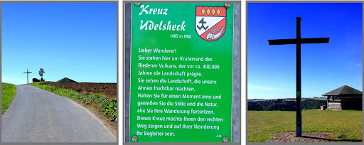 Am Parkplatz des Stausees Rieden beginnt der kurze Zuweg hinauf zur Staumauer, wo sich das Portal des Traumpfädchens befindet. Es bietet sich aufgrund der Steigung an, den Weg gegen den Uhrzeigersinn zu absolvieren. Daher wendet man sich also zunächst der stramm ansteigenden Waldseestraße zu und wandert durch die Ferienhaussiedlung bergan. Bald bleiben die letzten Häuser zurück und während sich nach rechts Wiesen öffnen, begleitet links Wald den Weg. Die Wegböschung bietet tolle geologische Einblicke in die feurige Vergangenheit der Vulkaneifel.