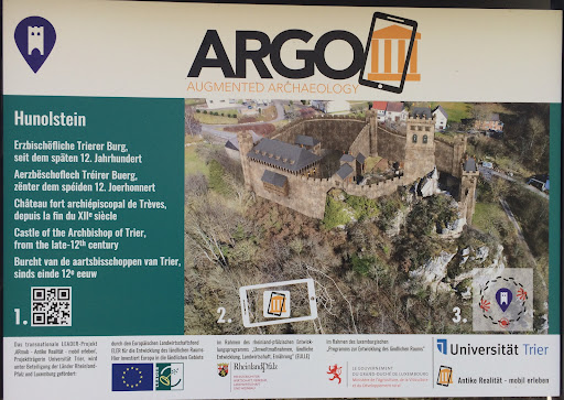 We are very fond of this place. You can stretch your imagination helped by the very good text and images on the display. What remains is pleasantly-impressive, but the crowning glory is the view from the rock over the valley, especially when the cloud is below you - that is breath-taking. Clever that the fortress was built so long ago moulded into the craggy landscape. The name condenses Frankish and Germanic roots, reflecting ancient political and linguistic borders: Hun-le-stein, rock o f the huns, as opposed to Frankenstein, rock of the Franks. Don't miss the nearby castles of Dhronecken, Herrstein and Baldenau, as well as the...