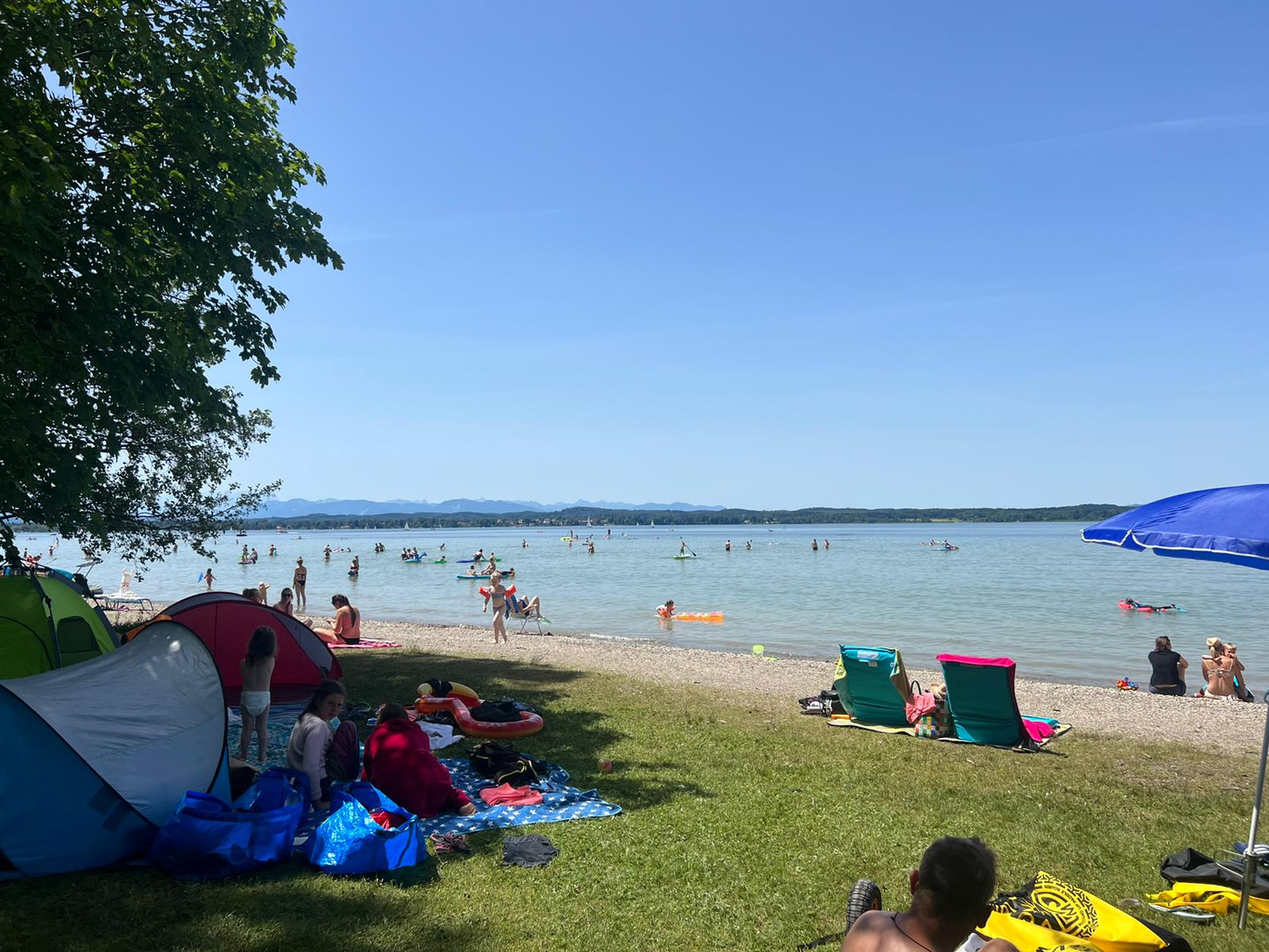 Read moreOne of the best beaches along Starnberger See. Wide and ample space all along the water with green grass and shady trees. The best part is that only the first meter or two in the water is rocky and after that is soft sand so if you just get past the first meter it's a bit easier on the feet. There are several toilets up down the beach and some overpriced, over-busy Kiosks making big money on the captive audience they have. Nice weather days will be crowded and probably flooded with bees and wasps so...