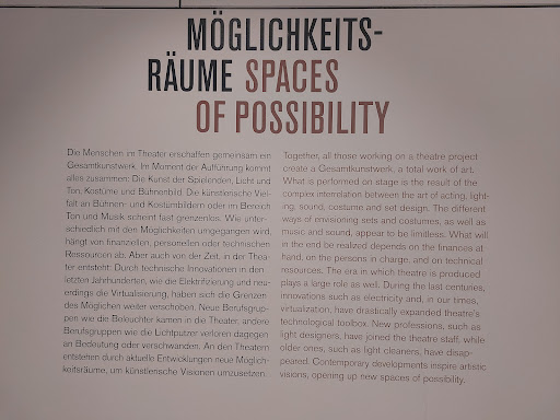 I went to the "Making Theater" exhibition. Very interesting and well curated! Descriptions both in German and English. Places available for sitting, e.g. to watch videos....