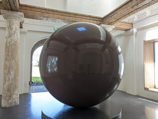 Read moreVom alten Kasernentor ist in der Tat nicht mehr viel Substanz erhalten. Dennoch wurde das wenige, sehr gut zu einem harmonisch modernen Gesamtkunstwerk komponiert. So spiegelt sich bei passender Beleuchtung der Fensterausblick in der Granitkugel. Auch die anderen Lichtquellen spiegeln sich, je nach Einfallswinkel, unterschiedlich auf der zentralen Granitkugel. Runde Elemente (Säulen, Sockel, Kugel) in tollem Einklang mit quadratischen Elementen (Raum, Holzbalken, Fenster). In Ruhe auf sich wirken lassen und das Spiel mit Licht und Formen aufnehmen, in dem man langsam seinen "Point of view" ändert. Ich bin gewiss kein Fan von moderner Kunst, aber dies hier hat...