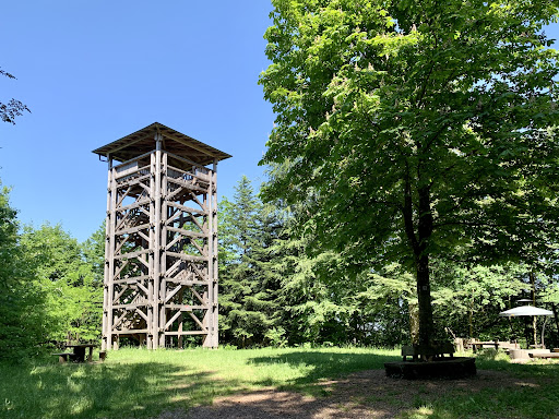 Der ursprüngliche Riesbergturm wurde 1974 erbaut, brannte jedoch im Jahr 2008 vollständig ab. Zwei Jahre später, im Jahr 2010, wurde er in seiner heutigen Form neu errichtet – wieder als Holzturm, aber moderner und stabiler gebaut. Besonders schön ist der Rastplatz direkt am Turm: Es gibt Sitzmöglichkeiten und Grillstellen, die zum Verweilen einladen. Der Ort wirkt sehr gepflegt und ruhig, was ihn auch für Familien oder Gruppen zu einem tollen Ziel macht. Wer noch mehr Natur erleben will, kann den Besuch des Turms gut mit einer Wanderung zur Hörschbachschlucht oder dem Felsenmeer verbinden.