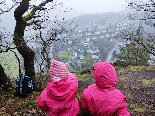 Read moreWegen etwas grauen Wetter was in der Nähe zum frische Luft atmen gesucht... Auf diesen Aussichtspunkt gestoßen bei Recherche... also wacker hin mit unseren beiden 3 jährigen Zwillingsmädels... Am Parkplatz und unten im Ort vorm Aufstieg is noch jeweils nen kleiner Spielplatz... Dann gings hoch (recht steil - insbesondere das letzte Stück) zum Aussichtspunkt. Echt grandioser Ausblick. Aber wie schon jemand erwähnte: Es gibt keinerlei Sicherung! Also schön vorsichtig sein!! Auch wenn für mich nicht klar ist, dass es überhaupt frei...