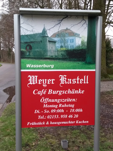 Ich habe schon mehrmals mit meiner Familie die Burgschänke besucht und dort stets gut gegessen. Egal ob Fisch, Wild oder saisonale Gerichte wie Spargel oder Gans, wir waren bisher sowohl mit der Bedinung, als auch mit Speisen und Getränken absolut zufrieden. Die Steaks vom Black-Angus sind hervorragend und die Preise sind moderat und angemessen. Im Sommer bietet der Innenhof des Weyer-Kastell eine ansprechende Atmosphäre um den Abend bei gutem Essen und dem sehr schmackhaften, eigenen Bier des Kastells...