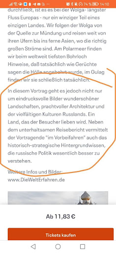 Read moreamit möchte ich darauf hinweisen, dass ich die Veranstaltung mit dem Titel „RUSSLAND zwischen Polarmeer, Baikal und Kaukasus“ sowie die begleitende Werbung äußerst unpassend ist.