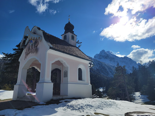 Read moreDie kleine Kapelle liegt wie ein Schmuckstück auf einem Kissen aus Schnee am Lautersee. Sie ist im Sommer, wie im Winter ein beliebtes Wanderziel. Wir sind von Mittenwald einen gut geräumten, nicht sehr steilen Weg-Nr. 821 hochgelaufen und dann über den Steingarten und die Talstation der Kranzbergbahn Nr. 828 wieder zurück nach Mittenwald gelaufen. Auf diesem Weg gibt es recht viele Bänke auf denen man auch im Winter die Sonne...