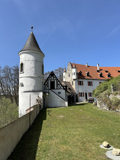 Read moreIch war heute mit einer Freundin wandern. Wir hatten Glück und konnten den Innenhof ansehen, da wir den Schlossherren gesehen hatten, gefragt, und er uns herein gebeten hat. Auch hat er uns den Weg zur Burgruine gezeigt, der nur von innen zugänglich ist. Kurzum, er war sehr freundlich. Demnächst ist wohl auch ein Biergartenbetrieb im Hof geplant. Und nun zu den schlechten Rezessionen, die sich darüber äußern, dass die Anlage in Privatbesitz ist und normalerweise nicht betreten werden kann. Ja, das ist doch normal bei Schlössern in Privatbesitz. Ich verstehe den Anspruch hier nicht. Wir hatten Glück, dass der Besitzer heute uns ein bisschen was zeigen...