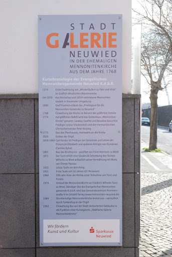 Read moreIch besuchte dort eine sehr erfrischende und unterhaltsame Ausstellung. Ich war dort an einem Werktag gegen Mittag - ganz alleine. Die Ausstellung war über drei Stockwerke verteilt. Je höher man kann, desto kälter wurde es. Zu hören waren die Straßengeräusche und die Geschäftigkeit der Rezeptionistin. Leise Untergrundmusik hätte der Betrachtung der Kunstwerke nicht geschadet. An der Kasse gab es einen kleinen Museumsshop, bei dem ich mir Ausstellungs-Erinnerungen mitnahm. Kostenpflichtige Parkplätze gibt es in unmittelbarer Nähe der Stadtgalerie. Die Innenstadt von Neuwied ist von dort leicht fußläufig erreichbar, das Rheinufer direkt vor der Tür. Da lassen sich Kunst, Natur und Genuss...