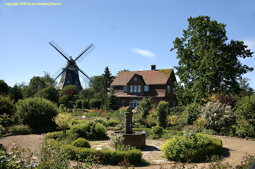 Man stelle sich vor: Mitten in einem beliebten Kurort, dessen Imobilienpreise die Ureinwohner (wie sich von den dortigen Friesen sprechen lassen darf) mittlerweile mehr und mehr ins Restland von Föhr vertreibt behauptet sich der Traum eines Mannes gegen die Filet Stück Träume von Investoren und Grundstücksmaklern, nämlich einen Raum zu schaffen, der fürwahr einzig in seiner Art ist, auf Föhr, auf sämtlichen Nordseeinseln und auf dem Festland sowieso, der Park an der Mühle. Wie ihm dies gelungen ist, lässt sich am besten (und verdientesten) von Inselfotograf Hermann Hinsberger selbst erzählen, der diesen Ort erst erträumt und dann mit nur drei Menschen geschaffen hat, über die Widerstände und Bedenken, nicht nur der Investoren und Makler hinweg, ein Ort, an dem mehr zusammen kommt als eine sorgfältige Wahl von Anpflanzungen, Beschreitungsplanungen, Bewässerungen und Dekor und der Beleuchtung, die den Park am Abend einer Fülle von Möglichkeiten öffnet, die sich der Großstädter daheim nie heraus nehmen würde im eigenen Stadtpark, hier aber als ein Kurgast lässt sich der Holzboden vor dem Parkteich (stimmungsvoll ausgeleuchtet ist es da, wie gesagt) als Tanzfläche nutzen (zu I-Pod oder Walkman, schließlich soll die Nachbarschaft nicht gestört sein in ihrer eigenen Erholung) oder es lässt sich Stammtisch halten, archaisch auf Steinen unter einer Eiche, dessen große Leuchte im Geäst schon seit ein paar Jahren nicht mehr ihren Glanz von Vollmond verbreitet, Herr Hinsberger wird wissen warum und wenn es echten Vollmond hat und vielleicht ein Wolkentheater dazu, lässt sich das andächtig von der Märchenbank aus betrachten, die hier in der dafür bestmöglichen Position aufgestellt wurde als ein Ort mit dem Wünschen zu liebäugeln, beginnen tut das alles aber gegenüber in der nordöstlichen Ecke des Parks, aber auch das versteht Herr Hinsberger anschaulich zu erklären und bestimmt führt er einen dann auch zum Brunnen am Herzpunkt des Parks und wenn Sie sich schon immer fragen, ob es wohl einen Ort gäbe wo sich noch einmal mit dem Liebsten so tanzen ließe wie einst und allein, es gibt die Technik dazu (z.B. Sony DD 100 Walkman, zwei Kopfhörerausgänge, Spitzenklang) und vorallem gibt es den Ort dazu und wir danken es Herrn Hinsberger sehr, dass sein Traum unserem Traum auf die Sprünge geholfen hat. Das darf ihm gern mal...