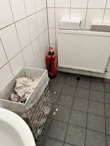 Im Leergutbereich hat man mit Maschine den Boden gewischt, gleich so nass, dass sich eine Kundin durch Ausrutschen fast verletzt hätte und nur noch durch ihren Freund aufgefangen werden konnte. Unfallgefahr!