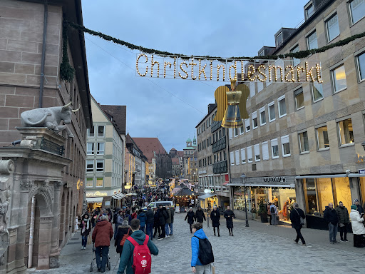 Azt mondanám, hogy csak egyike a Pegnitzen átívelő Nürnbergi kőhídnak, ha nem szúrtam volna ki egy szarvasmarha szobrát a híd északi városmag felőli oldalán. Egyből lejött, hogy nem csak egy szokásos példány a fajból, hanem a magyar szürkemarhát ábrázolja a szobor valódi szarvakkal a fején, és nem kőből készítettel. Az idegenvezetőnk felkészült volt, és elmondta a történetet: a középkori Magyarország egyik legnagyobb exportcikke volt a szürkemarha, amiből az 1600-as években évi akár 100.000 darab jutott el Nyugat -Európába, és volt év hogy Nürnberg maga 70.000 darabot vásárolt meg. Híresek voltak a marhakaraván útvonalak, amiket hajdúk biztosítottak, és amiknek köszönhetően más utazók is csatlakoztak hozzájuk a biztonságuknak köszönhetően. Nem beszélve róla, micsoda vendéglátóipar épülhetett a karaván útvonalán, hiszen az állatokat és az embereket is etetni, itatni, néha felvidítani is kellett. Egyenesen királyi rendelet szólt a marhák Nyugat-Európába szállíthatóságáról. Azon a napon, amikor egy marhaszállítmány megérkezett Nürnbergbe, semmilyen más húst sem volt szabad kimérni a városi mészárszékekben, nehogy silányabb portéka keveredjen a magyar szürkemarha közé. Az utolsó nürnbergi marhavásár 1713-ban volt. A szobor alatti felirat: "Omnia habent ortus suaque incrementa sed ecce quem cernis nunquam bos fuit hic vitulus", ami magyarra fordítva annyit tesz: "minden dolognak van kezdete és fejlődése, de íme ez az ökör, amit lát, soha nem volt borjú." - bevallom nem tudok pontos értelmezést adni a dolognak.