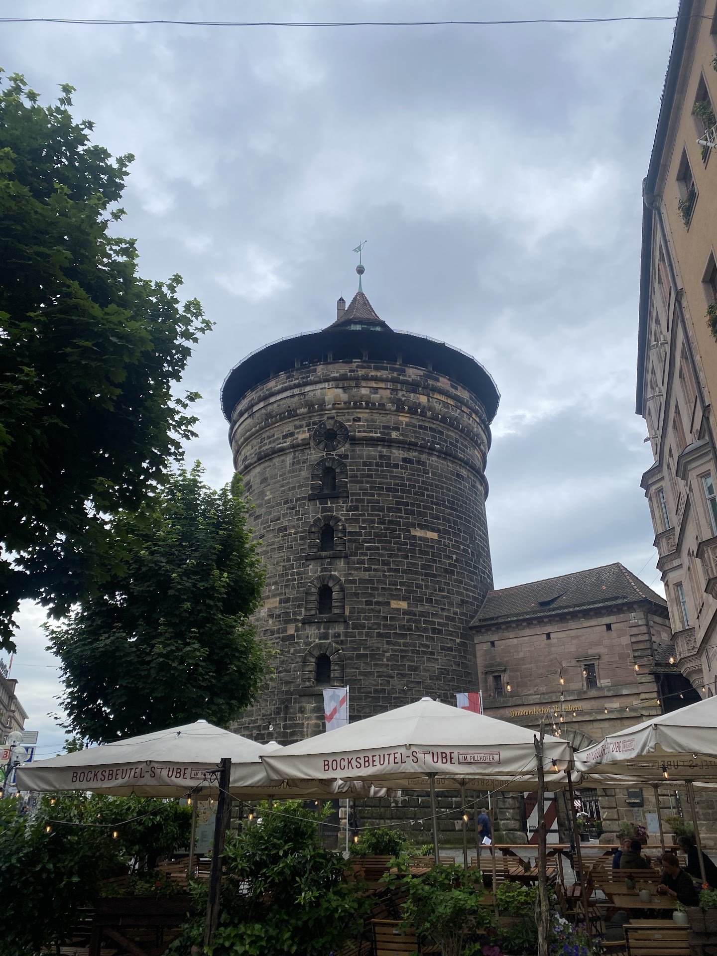 If you are looking for souvenirs, this is worth checking out. I have yet to find anything Nuremberg is known for (aside from gingerbread and (formerly and sadly no longer) toys), but this small corner offers local arts the likes of which you might find in an arts and crafts festival, though some are distinctly higher end. While not generally screaming "I'm definitely from Nuremberg!" it's a great way to support local artisans, which is as good as anything, in my book. You'll find pewter figurines and steins, candles and candle holders, quirky and original pottery, and elegant glass pieces. There's even an antique toy shop, jam packed with old collectibles at obviously overinflated prices. You can find a "penny"-smashing machine right outside, though! The whole place takes about 45 mins or less if you hit every shop, so it's a quick stop. Keep in mind, shops close around 6; it's only the restaurants that...