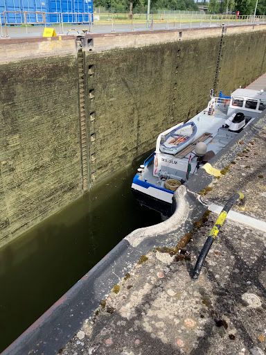 Die Schleuse Nürnberg bietet einen kleinen Einblick wie die Schleusen Arbeit geleistet wird. Die Schleusen Wärter so wie es früher war ist durch die Technik in dem Fall hat sie sich sehr geärgert. Es sind nicht wie früher die ganzen Schleusen besetzt es ist zeitweise anders. Die Schleuse hat ihre Länge zum einen fast ganz ausgeschöpft da ein Schubverband diese Schleuse fast voll war. Doch das hat sie gut gemeistert. Es ist immer schön anzusehen wie hier die Technik funktioniert...Toll