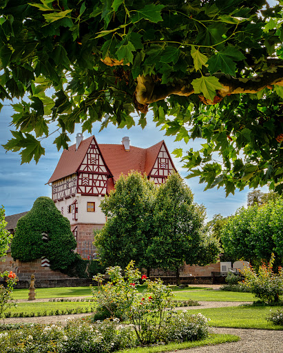 Kolejna rezydencja, wiejski dwór obronny, pośród "czosnkowych pól" na północny zachód od Norymbergi. W XIV wieku właścicielami majątku byli rycerze Kreß i zapewne to oni wznieśli tu pierwszy kasztel. W czasie pierwszej wojny margrabiowskiej uległ on poważnym zniszczeniom. Około 1479 roku, Hans Kreß odbudował zamek nadając mu dzisiejszą formę. Zabezpieczył go też w fosę i nowe zabudowania gospodarcze. Po jego bezdzietnej śmierci, wdowa po nim sprzedała posiadłość nuworyszom. Rzemieślniczej, bogatej rodzinie z aspiracjami, czyli Fütterom. Nowi właściciele upiększali, remontowali, aż w końcu sprzedali zameczek Reichom, a ci z kolei odstąpili go rodowi von Neunhof. Tu przez mariaż posiadłość znowu wróciła do rodziny Kreß von Kressenstein. Druga wojna margrabiowska i wojna trzydziestoletnia nie dotknęły samego zamku pustosząc wszystko wokół. W latach 60, XX wieku, miasto Norymberga wydzierżawiło zamek i zorganizowało tu muzeum łowiectwa, będące filią Narodowego Muzeum Germańskiego. Odtworzono też barokowy ogród, wyposażony nawet w repliki rzeźb ogrodowych (oryginały w Muzeum w Norymberdze). Od 2013 roku w budynku rozpoczęto remont, który trwa do dziś. Zameczek jest zamkniętym, niedostępnym dla zwiedzających. Ogród można zobaczyć tylko w sezonie turystycznym, od kwietnia do października. Sam zameczek - dwór to niezwykle ciekawa budowla składająca się jakby z dwóch części. Na kamiennej, solidnej, obronnej "stopie", porządnie podpiwniczonej, dostawiono także dwukondygnacyjną "chałupę" z muru pruskiego z dwoma szczytami. Ciekawy zakątek. Miejsce świetnego spaceru zwłaszcza, że po drodze obronny kościółek św. Jerzego w Kraftshof z epitafiami Kreßów. Niestety niedostępność wnętrza (to chyba typowe dla wszystkich zabytków na "czosnkowych polach" to duży, bardzo...