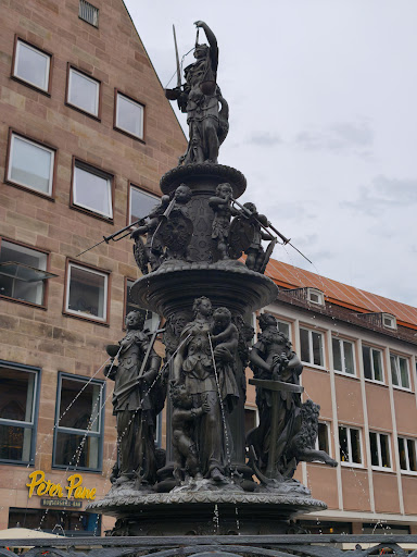 Read moreНюрнбергският Фонтан на Добродетелта, разположен между църквата „Свети Лоренц“ и улица „Кьонигщрасе“, изобразява женски алегории за трите божествени добродетели и кардиналните добродетели на Платон. Това великолепно произведение от късния Ренесанс, създадено от Бенедикт Вурцелбауер между 1584 и 1589 г., първоначално се е намирало в гробището на мястото на днешния площад „Лоренцер“. Захранван от собствен водопровод, Фонтанът на Добродетелта е снабдявал жителите на Стария град на „Свети Лоренц“ с вода до въвеждането на централно водоснабдяване.