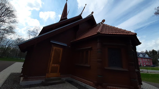Read moreAus dem Flyer: "Die 1904/1995 gebaute Kapelle ist aufgrund geschichtlicher und kunstgeschichtlicher Gründe ein Denkmal von nationaler Bedeutung. Sie ist nach dem Vorbild nordischer Stabkirchen im Norwegischen Drachenstil gebaut. Entgegen der Bauweise anderer Stabkirchen, zeichnet sich dieser Baustil durch die horizontale Anordnung der Blockbohlen aus. Drachen- und Schlangenmotive, Firstkämme auf den Dächern sond charakteristisch und erinnern an die Ornamentik der Stabkirchen. Durch die Norwegenbegeisterung des deutschen Kaisers Wilhelm II wurde dieser Baustil auch in Deutschland populär." Genutzt wird diese Kapelle als Begegnungszentrum für Konzert, Lesungen, Filmvorstellungen und soll auch für Trauungen...