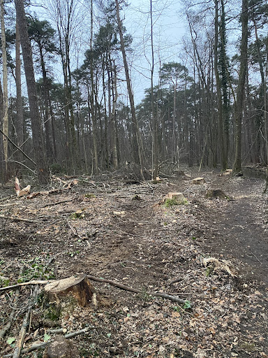 a pleasant forest about 15 to 20min walk from the Deutsches Museum Flugwerft, though across a busy street. Some paths marked in Komoot and Googke maps are long overgrown and gone. The trimm-dich-Pfad is kept in good oder and partly runs along a brook to a forest cafe-restaurant near a...