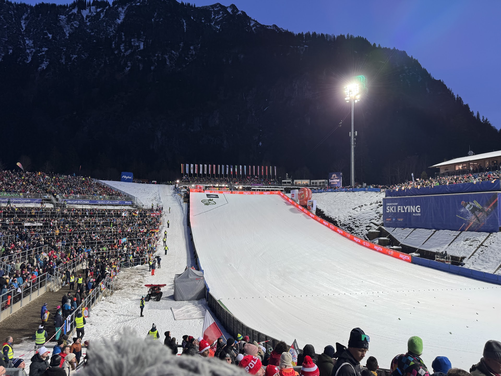 Wir waren erstmalig am 26.01.2025 zum Weltcup Skifliegen an der Skiflugschanze in Oberstdorf. Das Event selber war super organisiert, viel Personal zur Einweisung und Sicherheitskontrollen vorhanden. Ein großer Kritikpunkt ist die Parkplatzsituation, beziehungsweise der Weg vom Parkplatz bis zur Arena. Man muss eine halbe Stunde durch Schneematsch auf Waldwegen laufen. Der Pendelbus verkehrt leider nur vom Bahnhof in Oberstdorf zur Arena und nicht von den Parkplätzen. Warum? Zusätzliche Kosten für Park Parkplatz im Schneematsch: 10 EUR. Der Rückweg im Dunkeln war leider noch schlimmer, da ca. 5000 Menschen auf einem nur notdürftig ausgeleuchteten Waldweg im Schneematsch zurück zu ihren Autos „stolpern“ mussten. Hier müsste man doch als Gemeinde einen asphaltierten Fußweg schaffen, der dann im Winter auch geräumt und beleuchtet ist. Es ist unverständlich, wie der Veranstalter hier für die Genehmigung bekommen kann. Auch die Parkplätze selber sind zum Teil schlecht ausgeleuchtet, so dass man schon genau wissen muss, wo man geparkt hat. Störend fand ich auch die Toilettensituation in der Arena selbst, die aufgestellten Dixi Toiletten und ein Toilettenwagen waren in den Pausen dermaßen überfüllt, dass sich lange Schlangen bildeten. Kann man da nicht in ein stationäres Toilettenhaus investieren bei diesen Zuschauernmengen? Auch die Wege durch Matsch und Schlamm zu den einzelnen Blöcken in der Arena sind verbesserungsfähig beziehungsweise sollten asphaltiert werden. Die Bewirtung an den aufgestellten Wagen hat gut funktioniert und war preislich im entsprechenden Rahmen einer solchen Sportveranstaltung. Insgesamt also ein schönes Erlebnis mit Potenzial zu Verbesserung von Veranstalter...