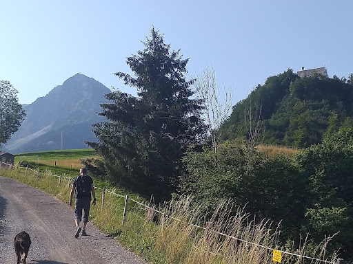 Read moreDer Weg zu zur Schöllanger Burgkirche ist nicht arg steil und relativ breit. Allerdings gibt es auch für einen Teil des Weges einen sehr steilen Anstieg, den wir gegangen sind. Der geht fast senkrecht im Berg hoch und die Stufen sind sehr schmal und glatt. Also wirklich nur was für sehr trittfeste Menschen und bitte nur mit Hunden, die man zur Not tragen kann. Wir haben das leider mir unserem Hund unterschätzt und ein zurück war nicht möglich also mussten wir da durch. Nochmal würde ich diesen Steig nicht gehen. Als wir oben ankamen, war die Kirche zu, komplett von einem Gerüst umgeben und Bauarbeiter wuselten rum. Aber die tolle Aussicht sind es allemal wert und nächstes Mal können wir bestimmt eine frisch restaurierte Kirche bewundern. Auf einem Bild kann man rechts oben die Kirche erkennen und...
