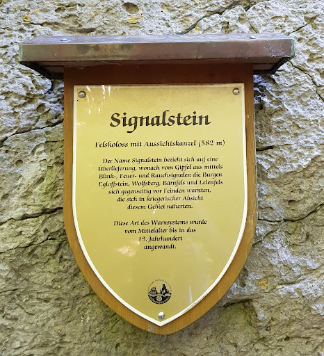 Read moreDer Signalstein ist ein markanter Fels auf den eine steile Eisentreppe führt. Wer den Aufstieg auf sich nimmt, wird von der Aussicht enttäuscht sein, denn die umgebenden Baumkronen verdecken weitgehend die Aussicht. Ein schmaler Ausblick bleibt frei, da nützt auch die angebrachte Beschreibung mit den Sichtachsen und -orten nichts. Nett ist es, den Kletterern von oben zuzusehen. Direkt neben dem Signalstein liegt die Klagemauer, ebenfalls eine markante Felswand. Gegen den Besuch im Rahmen einer Rundwanderung (z. B. auf dem Trubachweg) spricht nichts, wer den Signalstein als direktes Ausflugsziel zur Aussicht ansteuert,...