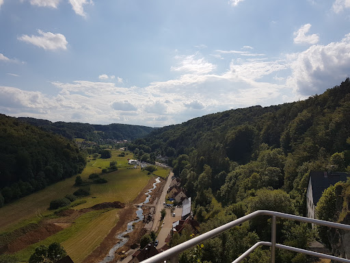 Read moreToller Ausblick in das Trubachtal. Die Treppenstufen hochzusteigen hat sich gelohnt. Es gibt sogar einen kleinen Parkplatz im Wald auf halber Strecke zwischen dem Ort Wolfsberg und dem Burgaufgang. Von diesem Parkplatz sind es nur 200m bis zum Treppenaufgang. Ansonsten kann man auch im Ort selbst gut Parken und von dort auch herrliche Wanderungen im Trubachtal...