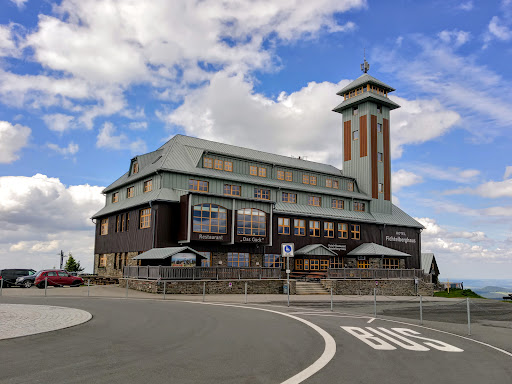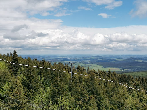 Excellent "lookout tower" package, neat and tidy from top to bottom. Plenty of interesting information inside, basically about everything in the vicinity you can possibly imagine (in German or Czech). Most importantly, from the top deck you get a 360° unobscured view up to some 150 km distance into the Czechia and Germany. Keep an eye out for the beautifully painted guidelines on the walls, and you won't miss a thing (when the weather is good tho).