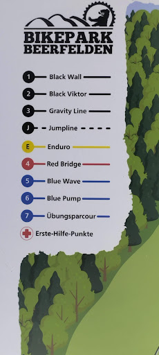 Read moreDie Strecken im Park sind im allgemeinen gut. Teilweise etwas abgenutzt, aber alles fahrbar. Auch an Abwechslung mangelt es nicht. Es gibt leichte Downhill Strecken und halbwegs anspruchsvolle Freerides. Der Lift is zwar ein bisschen zu kurz aber das ist nicht weiter schlimm. Leider kann ich vom dortigen Service nicht so positiv berichten. Angefangen hat es damit, dass die ausgeliehenen Protektoren alle feucht waren und übel nach schweiß gerochen haben. Das hatte uns aber nicht weiter gestört(wir waren zu dritt unterwegs, bei allen drei komplett verschwitzte Protektoren). Bei der zweiten Abfahrt hatte mein Kumpel dann einen Rahmenbruch bei einem Gap, wobei der Rahmen in zwei Teile zerbrochen ist. Als ich dann das Personal darauf hingewiesen habe holten sie mit ihrem Buggy lediglich das kaputte Bike ab; mein Kumpel musste runterlaufen. Dass kaputte Bike ließen sie dann sehr schnell verschwinden und vergewisserten uns, dass dies das erste mal vorgekommen ist. Als ich zum Schluss noch dazu aufgefordert wurde mein Bike zu putzen(meine zwei Kumpels nicht) habe ich den jungen Mann vom Personal dann doch noch auf die Protektoren hingwiesen und ob man diese nicht hätte trocknen können. Dieser wurde daraufhin sehr unfreundlich und erpresste mich sogar mit dem Einbehalt meines Personalausweises falls ich mein Fahrrad nicht putzen sollte. Abschliesend kann ich nur hoffen, dass wir einen schlechten Tag erwischt haben. Auf jeden Fall war dies von uns der erste und letzte Besuch im Bikepark Beerfelden. Für alle die ihr eigenes Equipmemt mitbringen und nicht auf den Service angewiesen sind ist der Park auf jeden Fall...