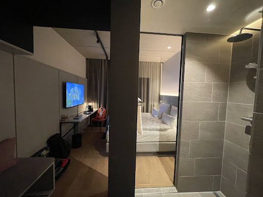 Friendly staff, brand new building and easy parking access. What the actual design statement is, remains unclear. For a fact it’s comfortable and well furnished. The rooms have a fairly standard layout and sizing . nothing special to it to justify the design claim or would it be for the open bathroom, which to me is simply ridiculous. Beds are too hard to be comfortable, which obviously is personal. Shout out to the XXL flatscreen with casting option. Breakfast was alright, but not amazing. Bar staff was flirting and drinking alcohol, which was cute but unprofessional. Overall good experience but too expensive really. 170€ is just not right. Can recommend at significant lower...