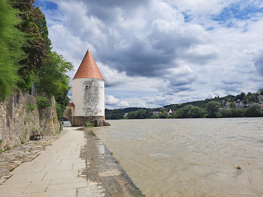 Read moreDer markante Rundturm mit dem spitzen Dach dominiert das Bild am Innkai. Der Schaiblingsturm ist ein beliebtes Fotomotiv an Passaus Südseite und hatte über die Jahrhunderte zahlreiche Funktionen. Heute gehört der weiß getünchte Granitkegel mit dem roten Helm zum Gymnasium Leopoldinum und wird nur wenige Male im Jahr genutzt. Der Schaiblingsturm diente schon als: Wehrturm: Ein Bollwerk gegen feindliche Angriffe, das war seine ursprüngliche Funktion. Dazu wurde der Turm 1250 auf einem Felsen am Innufer errichtet. Der Schaiblingsturm ist somit Teil von Passaus mittelalterlicher Stadtbefestigung. Speicherturm: Nach einer Renovierung im 15. Jahrhundert wurde im Turm unter anderem Pulver gelagert. Anlegestelle: Zu Zeiten des Salzhandels war der Schaiblingsturm Anlegestelle für die Inn-Schiffe. Bis 1957 gab es am Turm eine Seilfähre über den Inn. Unterkunft: Wachpersonal bewohnte den Schaiblingsturm ebenso wie Schauspielerinnen und Schauspieler der damaligen Kammerspiele Passau und Redakteurinnen...