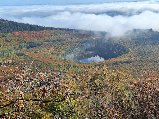Ich bin bei den Mofetten am Laacher See abgebogen und ĂŒber den Oberen Höhenweg und den Krufter Ofen zur Teufelskanzel. Leider ist die A61 ziemlich laut zu hören und verleidet einem die schöne Aussicht. Schade, dass die Autobahn so nah am Laacher See vorbeilĂ€uft. Auch der Abstieg zum See war durch LĂ€rmverschmutzung der A61 und des nahen Bimswerkes getrĂŒbt. Ich kann den Aufstieg daher nur...