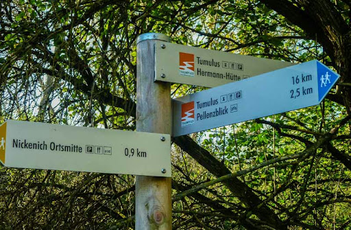 Die Tour beginnt am Parkplatz beim römischen Tumulus in Nickenich . Der Weg umrundet zunächst ein idyllisches Tal, bevor ein kurzer Anstieg vor der eindrucksvollen Aschewand (Schwarzen Wand), die der Laacher-See-Vulkan vor 13.000 Jahren hinterlassen hat, vorbeiführt. Der Standort beeindruckt ebenso durch einen weiträumigen Blick auf Nickenich. Nach kurzem Aufstieg lohnt ein Abstecher zur Rast an der Hermann-Hütte mit großartigem Panoramablick. Anschließend geht der Weg leicht abwärts und führt an den Rand des Tagebaus am Eppelsberg. Nach einer erholsamen Passage durch einen Mischwald , vorbei an Eule, Adler und Eichhörnchen, gelangt man zum Rastplatz beim Krufter Waldsee. Der Gipfelsturm beginnt auf mäßig ansteigenden Waldwegen, doch kurz vor dem Fels geht es steil hinauf, entlang einer eindrucksvollen Felsnische, zum Felsvorsprung Teufelskanzel mit sagenhaftem Fernblick Richtung Kruft und das Neuwieder Becken (einfachere Alternativroute vorhanden). Ein bequemer Höhenweg führt zur Schutzhütte „Am Krufter Ofen“, dann geht es in Serpentinen abwärts, mit weiteren sensationellen Ausblicken und durch einen mächtigen Buchenwald. Über freies Feld führt der Weg zum Laacher See und gibt erste Blicke auf das Kloster Maria Laach und die dahinter liegenden Eifelhöhen frei. Am nahen Ufer entlang lohnt sich ein Abstecher zum Seeufer, hier steigt deutlich sichtbar CO2 Gas aus der Tiefe und bildet unzählige Blasen, die so genannten Mofetten. Alsbald biegt der Pfad rechts ab und steigt 100 Höhenmeter steil empor zur Ahrefeld-Schutzhütte. Anschließend führen bequeme Forstwege und die Überquerung der L 116 zunächst durch einen Mischwald bis zum Keltischen Baumkreis, einem idealen Platz zur Erholung. Auf der folgenden Strecke eröffnen sich grandiose Ausblicke ins Brohltal und bis zu den Gipfeln des Siebengebirges. Durch Kiefern- und Birkenwälder erschließt sich an der Halde am Hummerich ein erneuter fantastischer Fernblick auf Siebengebirge und die Pellenz. Entlang des Waldrands, durch freie Flur und Mischwald-Allee, geht es in einem Bogen um den Sportplatz zurück zum...