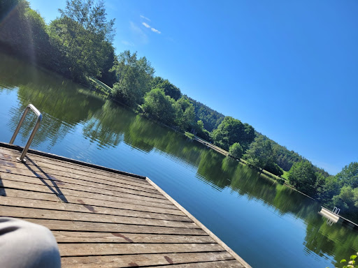 Read moreGrundsätzlich recht schöner Badeweiher mit einer Holzplattform im Wasser. Sehr gut gepflegte Liegewiese, wo man bei wenig Badegästen auch super Frisbee spielen kann. Leider ist das Mücken- und Bremsenproblem wirklich sehr übel an diesem See, man ist leider sehr beschäftigt mit dem Verscheuchen von diesen...