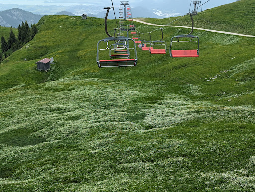 Sehr gemütlicher Sessellift (habe letztes Mal runter mit unserem 4-Jährigen den Lift geschlagen 😄). Nur ein Wehrmutstropfen, mit zwei Kids und Gepäck wärs schön wenn der Lift beim aussteigen etwas gebremst hätte, so hats die Mama über die Plattform hinaus geschoben. Da er das zumindest bei den uns nachfolgenden Familien getan hat, ok... Eine Anmerkung noch zum Juwelenweg: teils schön und kreativ gemachte Stationen, wegen mir dürften es aber gerne noch ein paar mehr werden da sehr große Abstände zwischendrin. Auch teilweise echt toll gedacht aber für die Kids vielfach zu hoch, so dass sie selber nicht hinkommen um Knöpfe zu drücken oder die farbigen Stecken bei einer der letzten Station zu bedienen, was etwas schade ist. Teils auch sehr schwierige und nicht unbedingt kindgerechte Fragen. Vielleicht könnt ihr das bei den weiteren Stationen noch etwas mehr im Hinterkopf behalten? Und gerne noch ein oder zwei Bänke an einem schattigen Plätzchen aufstellen, an heißen Tagen wie heute waren die vorhandenen leider nicht sehr gefragt, obwohl viele gerne eine Pause gemacht hätten auf einer...