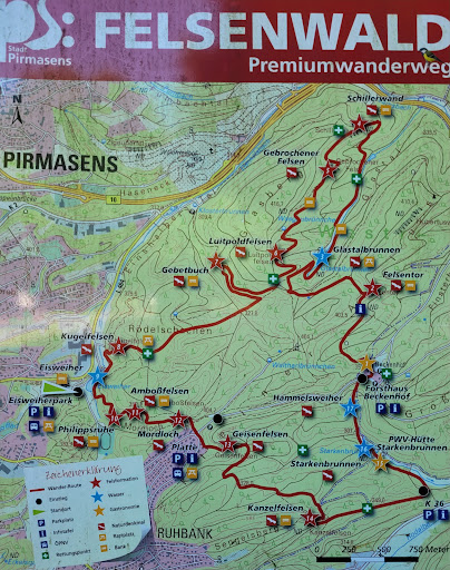 Read moreWer eine schöne mittelschwere Wanderung machen möchte ist hier gut aufgehoben.... Insgesamt ist die Strecke gut ausgeschildert, nur an 2,3 Stellen muss man etwas aufpassen. Mein Einstieg war am Parkplatz Eisweiher, gute Parkmöglichkeit. Wer am Ende und nicht zwischendurch etwas trinken oder essen möchte startet besser am Forsthaus Beckenhof mit Biergarten...😁 Reine Laufzeit hatte ich ca. 3 Stunden... für ungefähr 14 km... Die Strecke ist abwechslungsreich mit schönen Fernsichten und Feldformationen. Ab und an kreuzt eine Mountainbikestrecke den Weg...also Achtung, mir sind keine Radler begegnet aber anhand der Spuren, sieht man, dass die Trails...